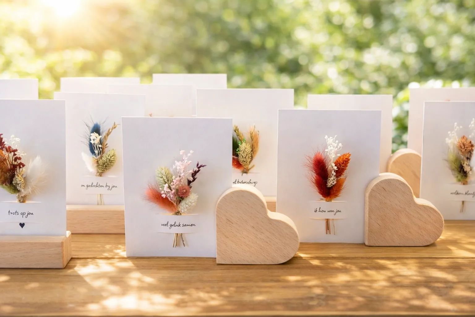 Ontdek de nieuwe kaartjes met droogbloemen, maar liefst 15 variaties in het assortiment. Combineer dit met één van de verschillende kaarthouders op de webshop en je hebt meteen een heel leuk cadeau in huis!